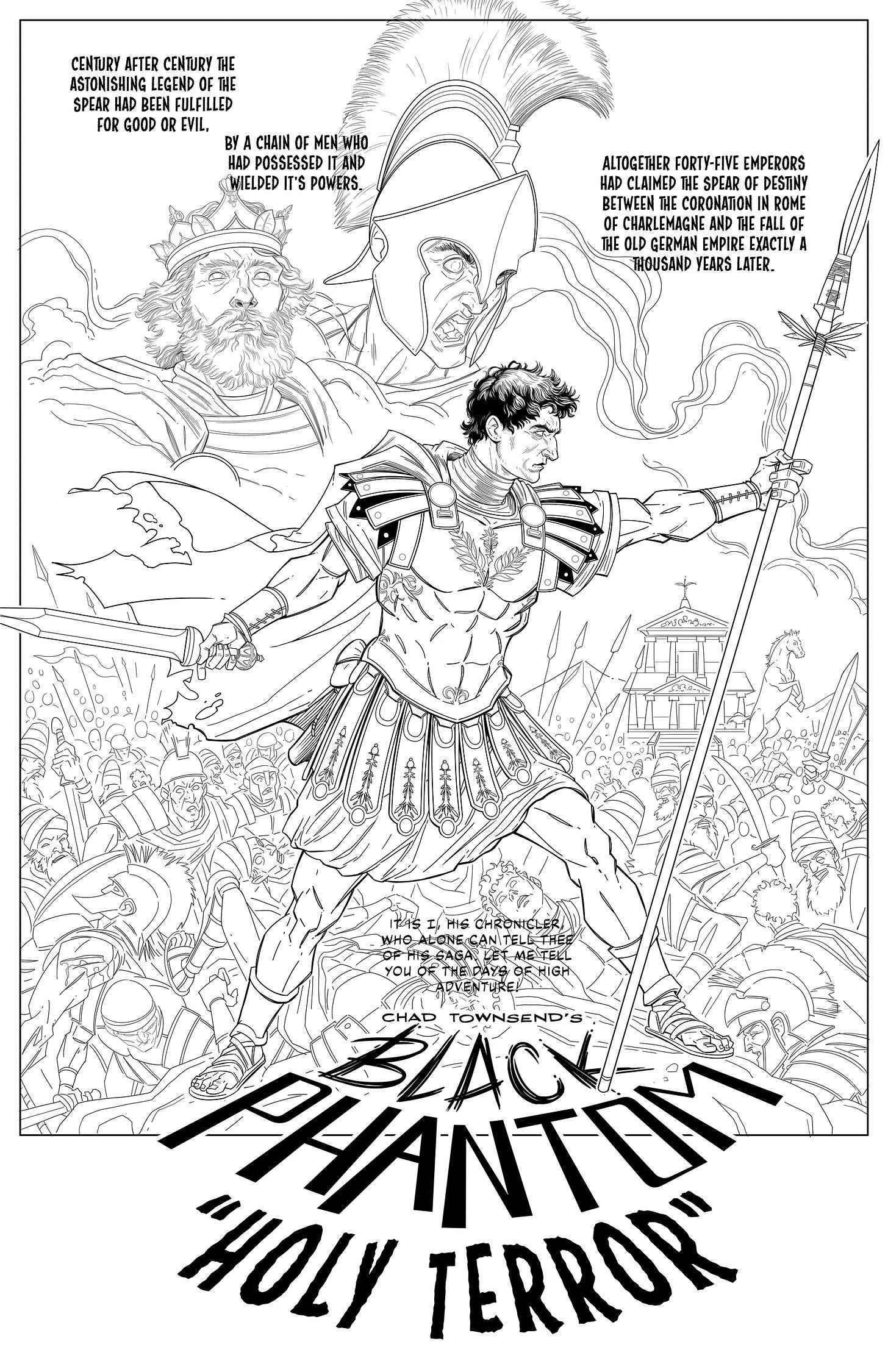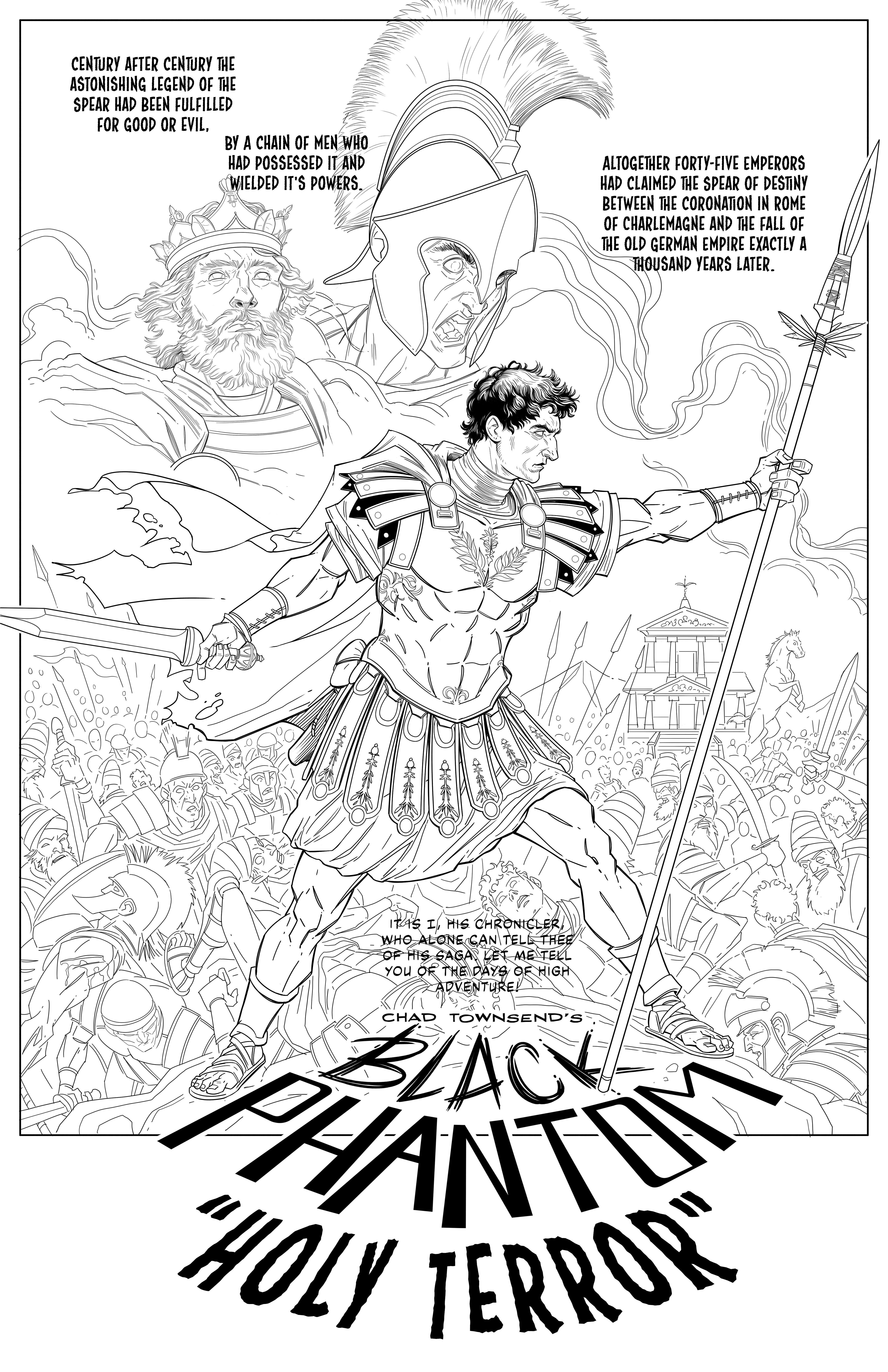 Now, I’m thrilled to share my next project: Black Phantom: Holy Terror #1. The stakes couldn’t be higher—Black Phantom and his fearless sidekicks are racing to secure the legendary Spear of Destiny before a mad general uses its power to wreak havoc. Thrills, action, and danger await! And guess what? The line art is 100% done!